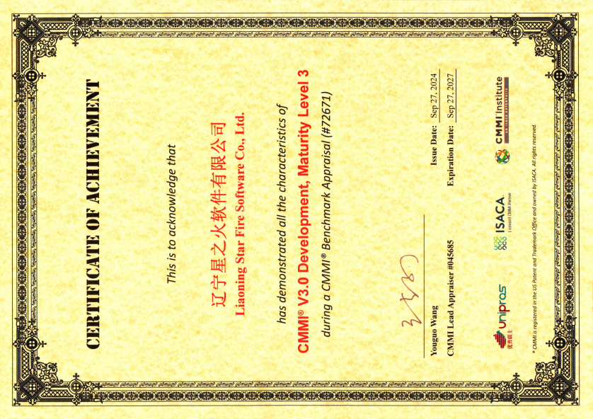 遼寧星之火軟件有限公司是具有中國軟件行業協會認證,ISO9001質量管理體系認證,AAA誠信和質量服務認證,遼寧省高新技術企業認證,遼寧省軟件行業協會認證等等20多年的高新技術軟件企業。